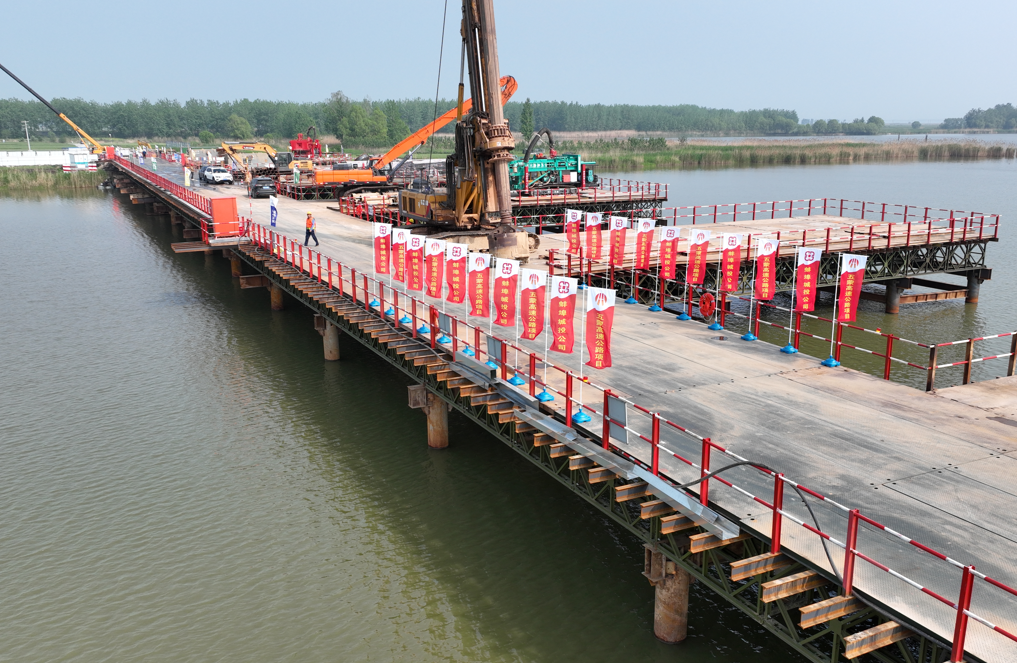 蚌埠城投五蒙高速公路項目TJ-01標段沱湖特大橋施工鋼棧橋順利合龍